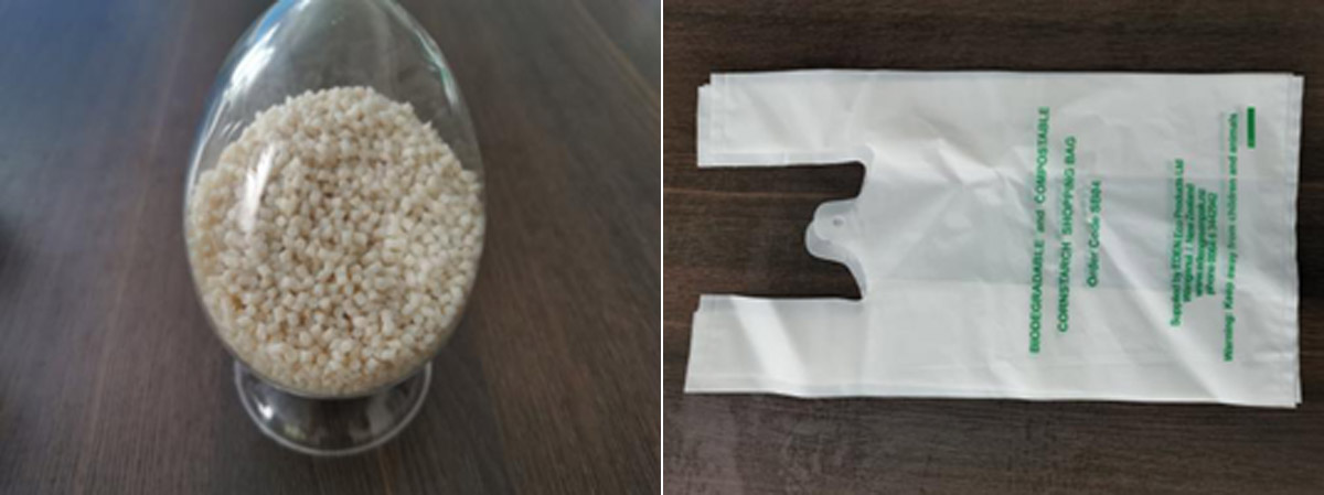 以PBAT和PLA为主体进行改性,其制品能够在使用废弃后100%生物降解,最终生成二氧化碳和水,不污染环境。产品具有良好的加工性能和物理性能,可直接用于吹膜加工制成各类薄膜制品,其最终产品的物理性能和使用性能接近或超过同类传统塑料产品的性能。
