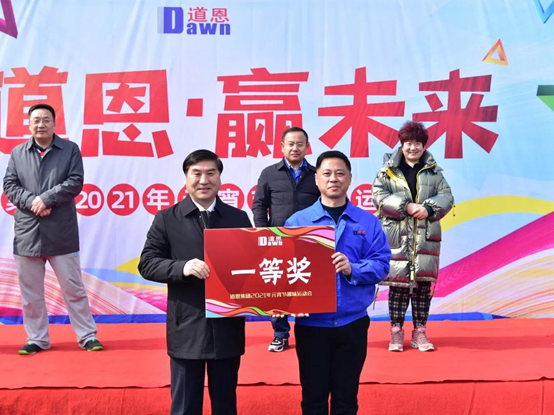 On February 26, Dawn Group’s 2021 Lantern Festival Fun Games with the theme of "New Dawn Winning the Future" was grandly held at Dawn College Student Dormitory Stadium. Yu Xiaoning, Chairman and President of Dawn Group, and members of the leadership team had the fun sports game with cadres and employees, which emphasized that the team spirit, fighting spirit, and competitive spirit demonstrated in the competition should be integrated into the work and new actions, new images, and new breakthrough should be realized on the new journey.