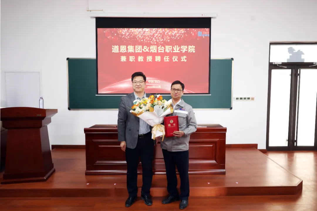 作为烟台职业学院兼职教授,FUN88股份总经理田洪池与该院博士代表苏玲签订了以师带徒协议。他在发表感言时表示,本次校企合作实现了创新链、产业链、人才链的高效融合,广大科研工作者要秉承家国情怀,将科研作为事业,把科研实力转化为自身的志气、骨气和底气。