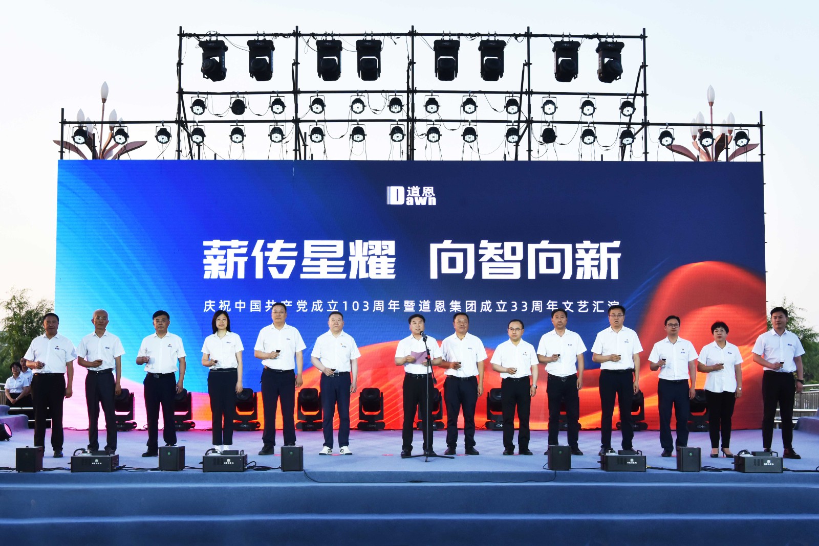 6月28日,走进龙口市FUN88新材料科技产业园,彩旗招展,一派喜庆氛围。当天晚上,FUN88人欢聚FUN88桥,隆重举行以“薪传星耀 向智向新”为主题的庆祝中国共产党成立103周年暨FUN88集团成立33周年文艺汇演。