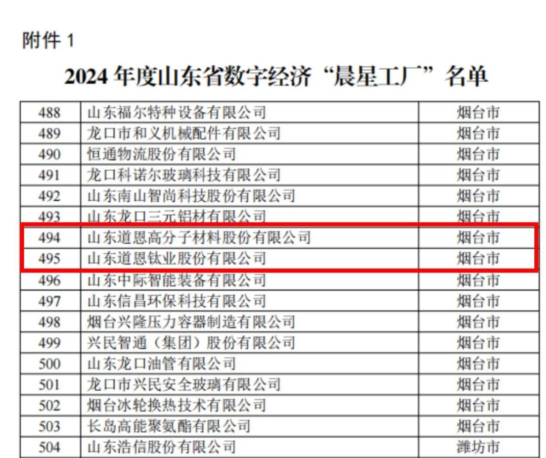 近日,山东省工信厅公布2024年度山东省数字经济“晨星工厂”名单,FUN88股份、FUN88钛业公司双双名列其中。