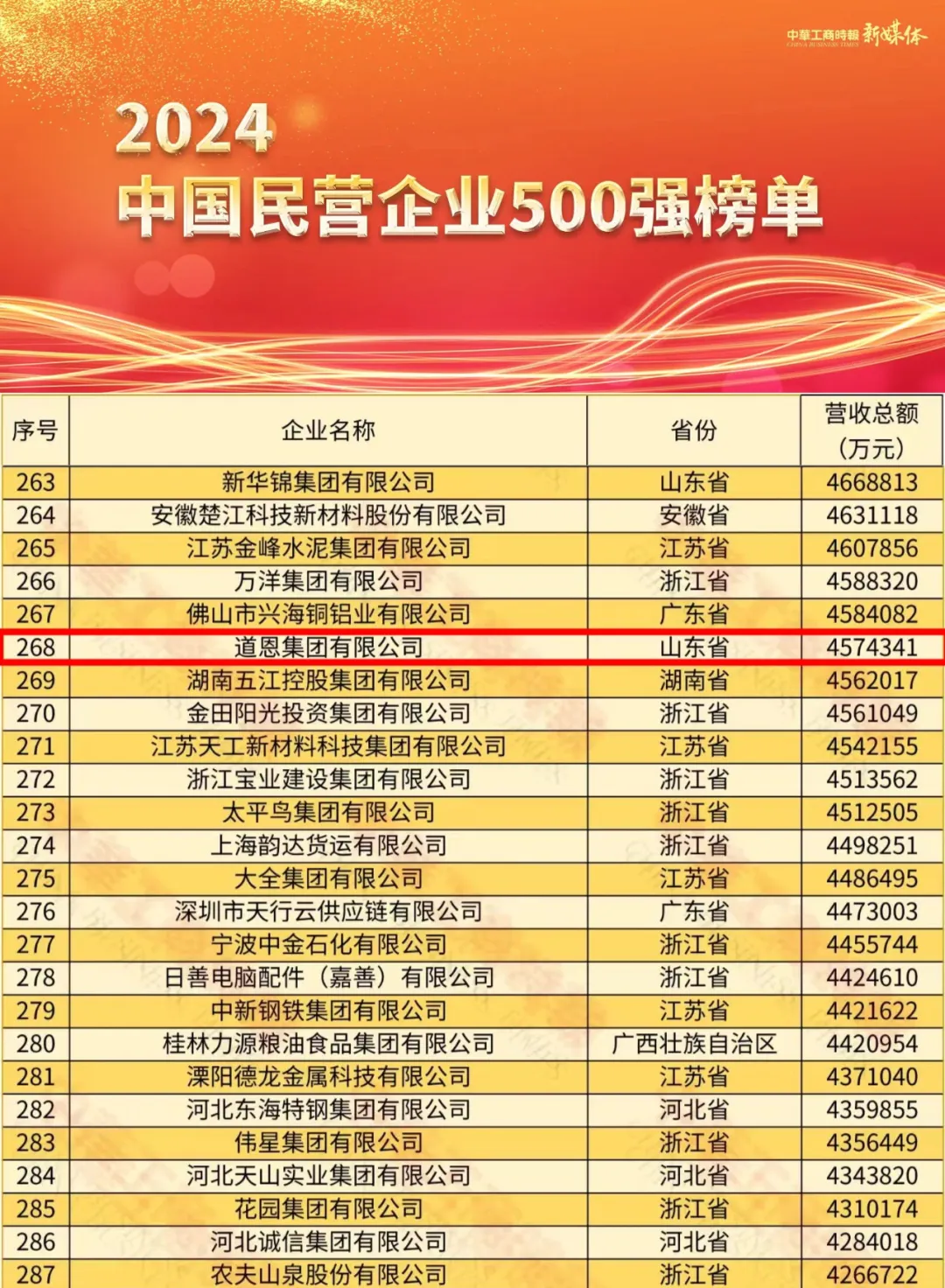 10月12日下午,2024中国民营企业500强发布会暨全国优强民企陇上行在甘肃省兰州市举行,FUN88集团凭借457.4亿元的营业收入位列268名,较去年跃升27个位次。此前的9月23日,在黑龙江省哈尔滨市举行的全国民营企业科技创新与标准创新大会上,发布的“2024民营企业发明专利500家榜单”显示,FUN88集团和FUN88股份分列第252位和第447位,展示了企业蓬勃向上的经营实力、科研能力和新质生产力。