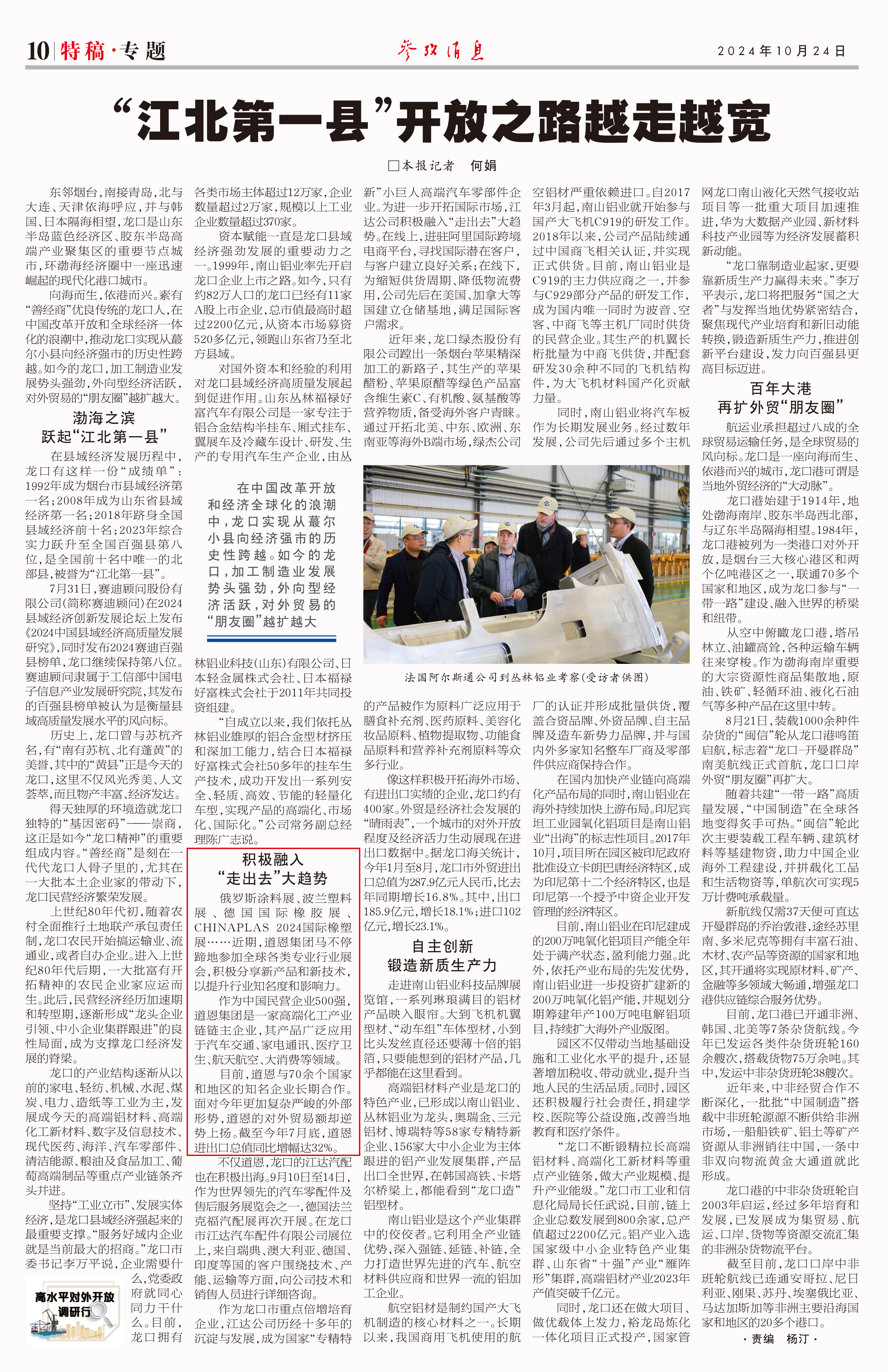 10月24日出版的《参考消息》,聚焦“江北第一县”——龙口的“开放之路”,点赞FUN88集团积极融入“走出去”大趋势,对外贸易额逆势上升,积极参与全球化市场竞争。