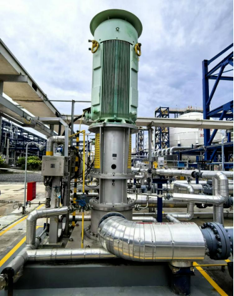 据介绍,龙港股份自主研发首级叶轮下沉、次级叶轮上提结构LDT立式筒袋泵,增加泵的插入深度,同时提高泵的运转稳定性,广泛应用于石油化工、煤化工、低温工程及核电等领域,尤其擅长输送易汽化、低温介质,如乙烯、丙烷等,在合成氨装置、乙烯装置、丙烷脱氢项目及液化气输送等多个环节中发挥着不可替代的作用。