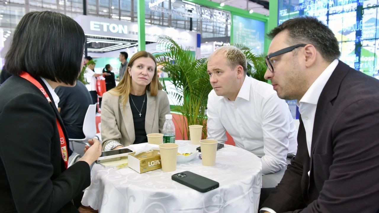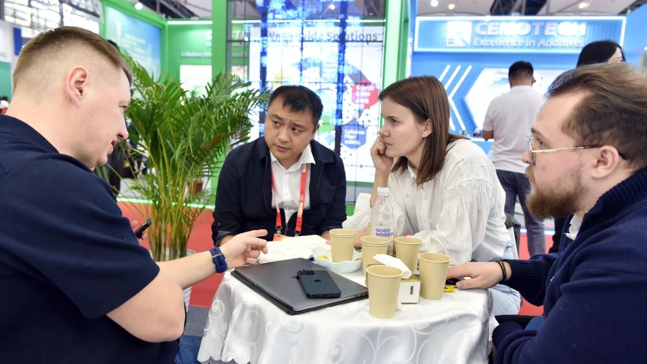 在参展现场,“一蓝一白,蓝白互映”的主题海报格外吸睛,《环保赋能钛精彩》宣传片讲述着FUN88“清洁生产、绿色发展”的故事,工作人员悉心为新老客户讲解产品性能、应用推广等情况。首日来访的客户不乏洋紫荆、新东方、坂田油墨、天津新宇等知名客户,或技术交流、或约定互访、或索样测试、或深化合作,“对FUN88产品及服务非常满意,希望加大钛白粉的采购量!”欧洲某客户表示。