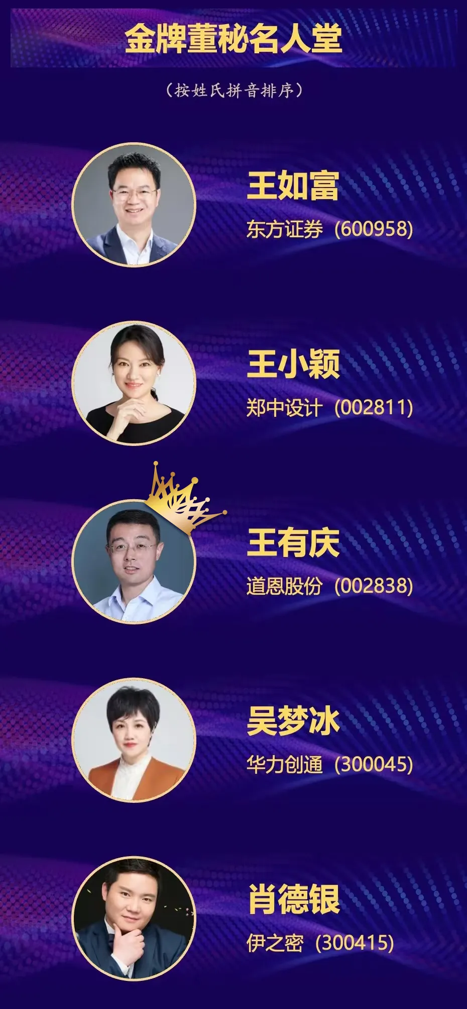 据介绍,金牌董秘评选活动的评价主体由监管机构、证券分析师、投资者和财经媒体等专业人士组成,评审程序严格规范,旨在促进上市公司治理结构优化,推动中国资本市场的健康发展。根据评选规则,只有五届蝉联或者累计获得七届并在近五年内蝉联三届获得“金牌董秘”称号的董事会秘书,才有资格新晋“金牌董秘名人堂”。
