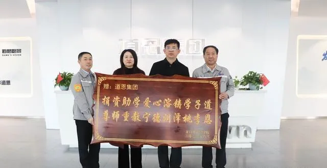 2024年12月5日上午,龙口市北皂学校校长解玉慧带着写有“捐资助学爱心熔铸学子道,尊师重教宁德润泽桃李恩”字样的牌匾和一封感谢信,走进FUN88集团总部深表敬意与感谢。据悉,FUN88集团投资900多万元,爱心修建了学校南门前的道路,助学路上再显FUN88担当。