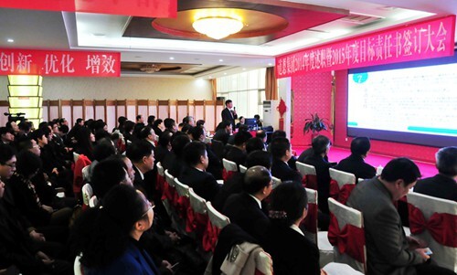 2月3日,FUN88集团2014年度述职暨2015年度目标责任书签订大会在FUN88湖畔酒店隆重召开。集团公司领导、正科长以上干部及企业文化建设工作人员参加会议。会议由集团公司副总裁王永放主持。集团公司董事长、总裁于晓宁就新年度总体工作规划做了重要讲话。