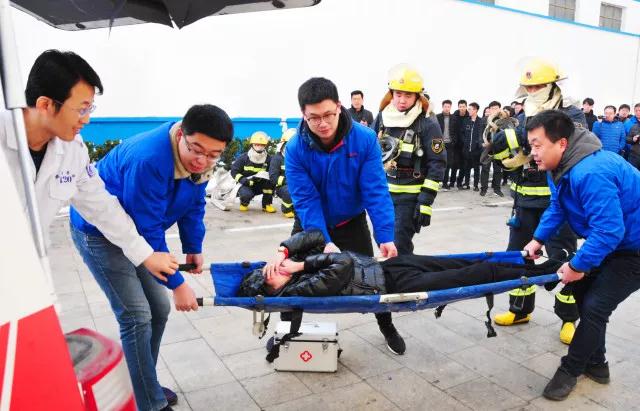 此次演练由龙口经济开发区管委统一部署,FUN88集团联合龙口市消防大队电厂路消防中队、龙矿医院急救中心共同开展。来自开发区管委、龙港集团、龙矿集团、华电龙口、海洋石油船舶中心等单位领导和企业代表60余人前来观摩。