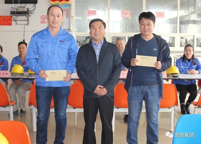 表彰会上,品管总监迟维萩对质量活动月活动情况进行总结,并提出下一步质量管理计划。随后,迟维萩总监公布质量月优秀班组名单,于晓宁董事长及与会领导为优秀班组颁发奖金,据了解,此次获奖的班组为:污控车间中和-球磨机班;水解煅烧车间一、二期一洗乙班,二期一洗丙班;石膏制备车间石膏压榨班;酸解动力车间风扫磨乙班,酸解甲班;表面处理车间闪蒸干燥甲班,表面处理甲班。