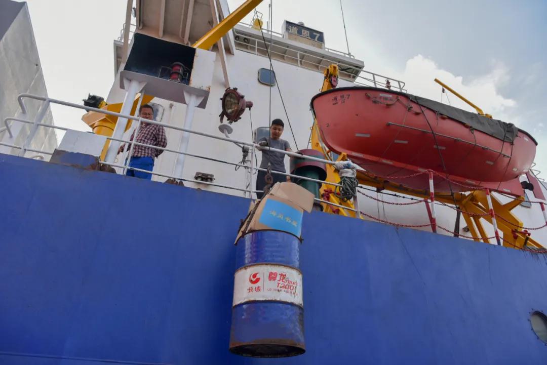 受疫情影响,船员们不能参加现场活动。仪式结束后,恰逢“FUN887”轮满载货物返航,抵靠龙口港进行卸货作业。韩永卫总经理专程把此次赠书送到船上,把精神食粮送到船员的心坎上。