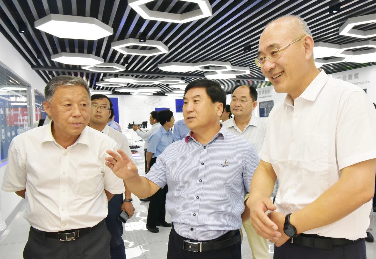 于晓宁董事长陪同陈克正校长(右)参观FUN88股份展厅