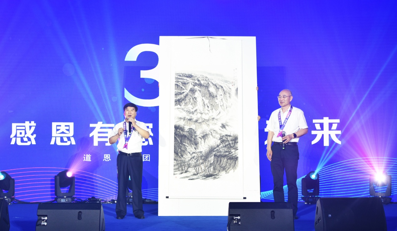 随后,主持人宣读了中石油、中石化等国内知名客户以及浙江大学等高校发来的贺电与贺信。在活动现场,青岛科技大学校长陈克正带来了一份特殊的礼物——《骊山印象》图。“从画中可以看到,山气势磅礴,层峦叠嶂,高耸入云,林木遍野;寓意着FUN88背靠青山,事业稳固;山水相间,财源滚滚。”主持人如是介绍。
