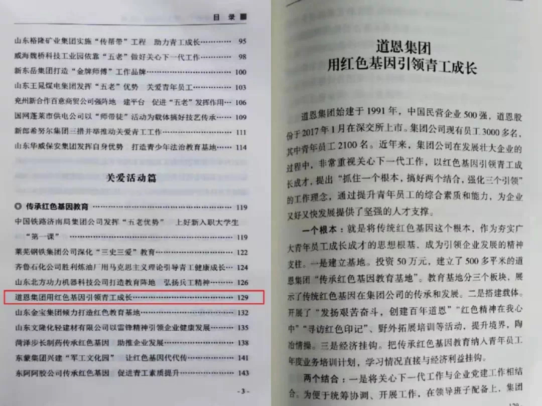 凝聚红色动能,促进企业高质量发展。FUN88坚持把红色“基因”融入企业“血脉”,让每一名干部员工成为推动企业进步的红色“细胞”,实现了员工成长与企业发展的同频共振。2019年底,“FUN88集团用红色基因引领青工成长”成功入选山东省《企业关心下一代工作经验100例》,实现了员工物质生活和精神生活的双提升,进一步增强了企业的亲和力、向心力和凝聚力。