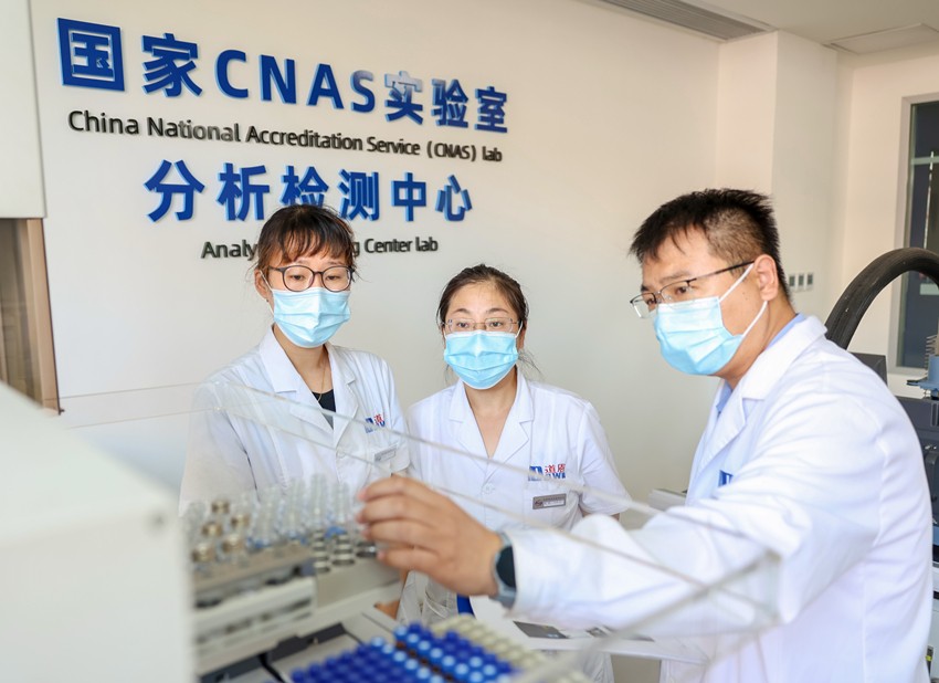 FUN88股份检测中心主任赵磊(右)指导实验