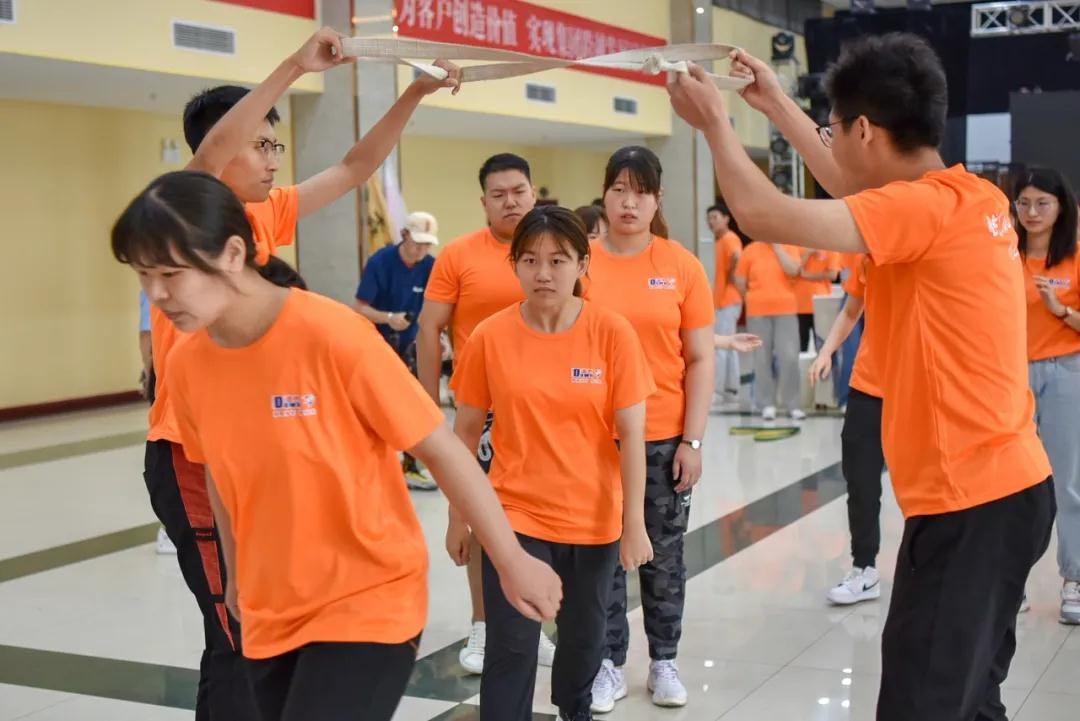 “大学里的那些事”主题座谈交流活动,为大学生们上了重要一课。FUN88集团往届优秀大学生员工代表从友情、爱情、课程安排、社团活动以及职业规划等方面进行了交流,使他们对大学生活和学业规划有了清晰的认识。“大家一定要珍惜美好时光,学好专业知识,持续丰富自己。”FUN88化学公司产品部经理刘娟、FUN88特弹公司运行保障部工艺技术员邬实,向同学们介绍了大学生活与学习经验。在妙趣横生的拓展训练活动中,“速度与激情”培养了学员认识自我、超越自我的精神和面对困难、迎接挑战的勇气;“双解码”让学员充分体验团队合作,培养了他们锲而不舍的意志;“扑克牌抱团”旨在让学员了解自身,找准定位;“乐章”用交响乐的形式让学员感受到团队带来的强大力量。