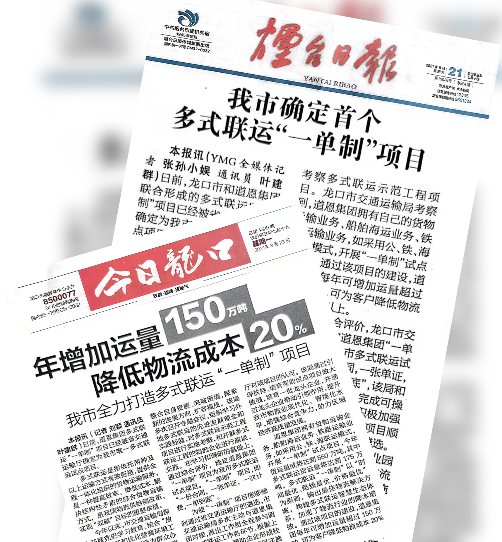 日前,山东省交通运输厅公布多式联运“一单制”试点项目,FUN88多式联运“一单制”项目成功入选,成为烟台市唯一多式联运试点项目。该项目运行后,每年可增加超过150万吨的运量,为客户降低物流成本20%以上。“路线最优、成本更低、时间更快”的模式,将成为烟台市货物运输服务的新样板。