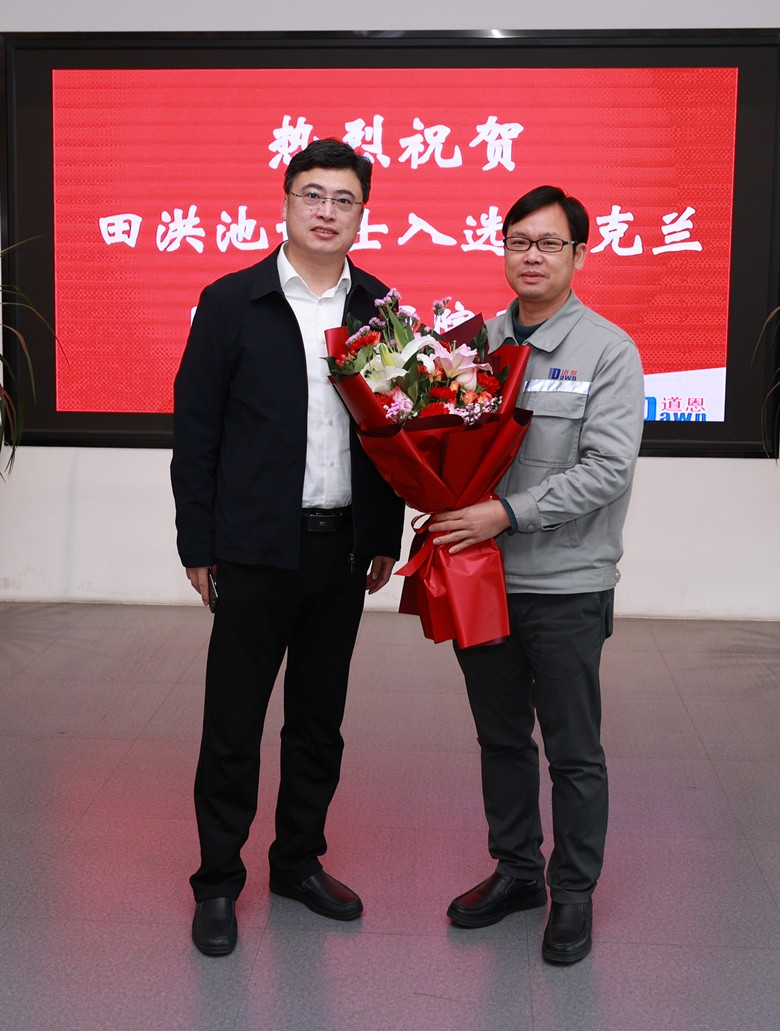 12月8日上午,龙口市委常委、组织部部长姜利春走进FUN88集团,祝FUN88股份总经理田洪池博士当选乌克兰国家工程院外籍院士,勉励田洪池院士继续发挥科研领军人才作用,勇于创新、勇攀高峰,多出成果、多育人才,为全市新旧动能转换和高质量发展做出新的更大贡献。龙口经济开发区党工委副书记王立新,FUN88集团董事长、总裁于晓宁,常务副总裁肖辉出席活动。