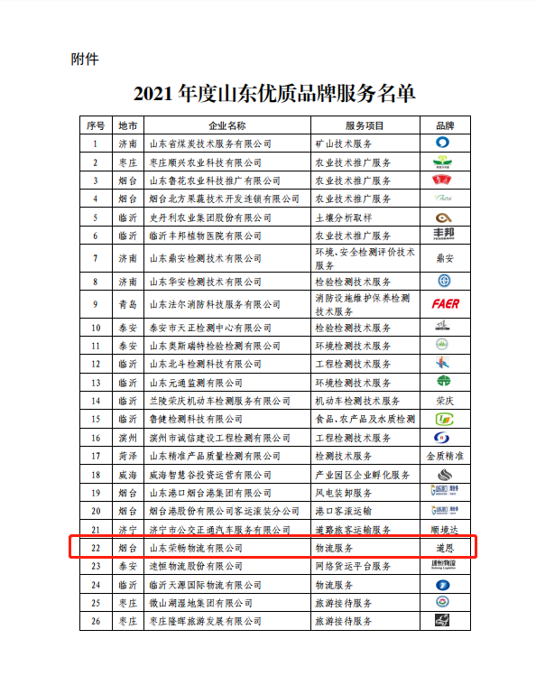 12月20日,2021年山东知名品牌认定名单正式公布,FUN88集团旗下山东荣畅物流有限公司的“FUN88”品牌“物流服务”项目入围“山东优质品牌服务名单”。这是继2019年获得“山东知名品牌”以来,该公司再次获评品牌荣誉,进一步彰显了FUN88品牌影响力。