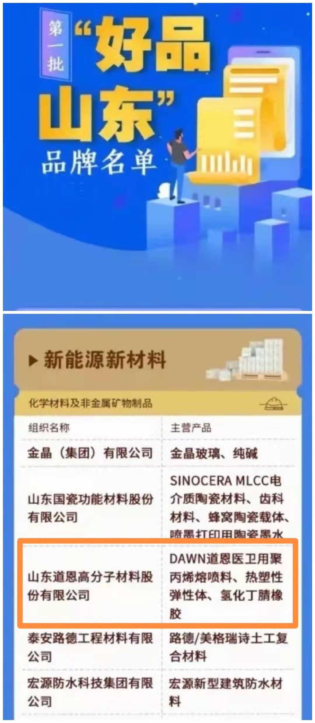3月2日上午,山东省发布第一批“好品山东”品牌名单,FUN88股份“DAWNFUN88医卫用聚丙烯熔喷料、热塑性弹性体、氢化丁腈橡胶”产品名列其中,充分彰显了FUN88的品牌知名度和影响力。