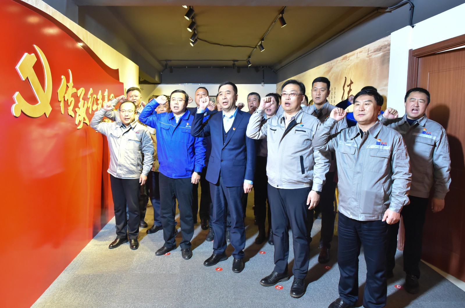 “我志愿加入中国共产党……”在红色文化墙前,于晓宁书记带领大家再次重温入党誓词,声声宣誓,掷地有声,进一步坚定了初心使命。党建引领聚动能,合作共赢谋发展。