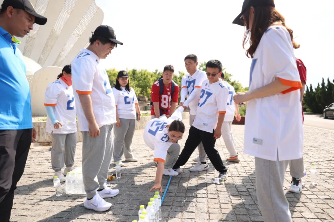 拓展活动设置“破冰热身”、“极限飞盘”、“徒步定向越野”等项目,学员们分为大聪明队、猴赛雷队、吃瓜群众队、元气满满队等4支队伍。在下午的定向徒步中,需要环养马岛完成各个点位任务,期间借助地图、指南针等工具通过途中各种障碍,快速到达各个目标点位完成任务。学员们积极与游客互动,完成各种定向打卡任务,每当有团队成员落队,大家用合唱的方式鼓舞着每一位伙伴,嘹亮的歌声回荡在养马岛上……